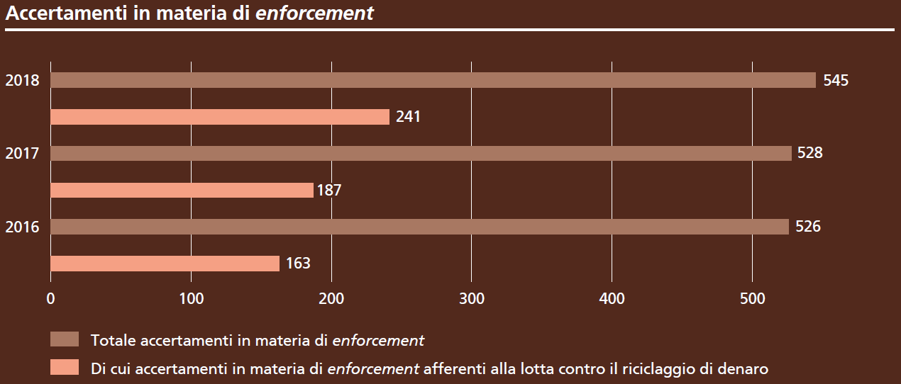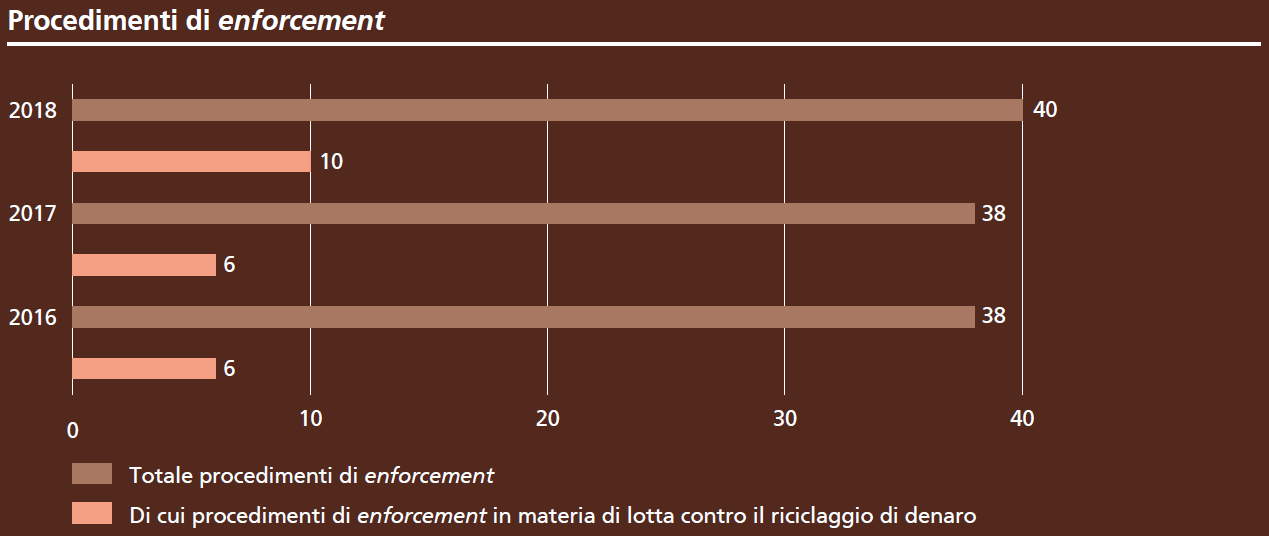 Una parte rilevante delle attività di enforcement svolte dalla FINMA riguarda la lotta contro il riciclaggio di denaro. Qualora sussistano indizi di violazione del diritto in materia di vigilanza, la FINMA può effettuare accertamenti in materia di enforcement.