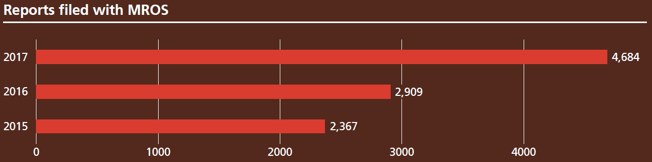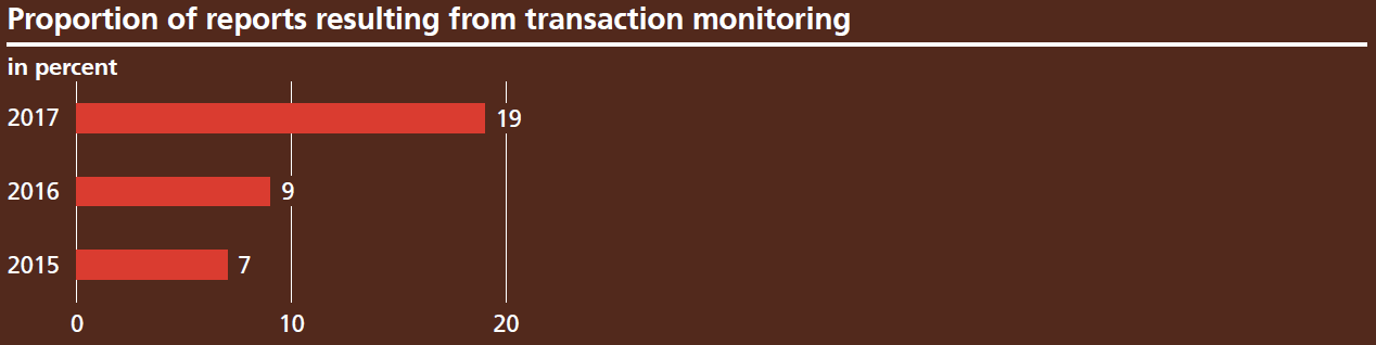 In recent years, Swiss financial intermediaries have identified an increasing number of suspicious clients, which they have reported to the MROS. Financial intermediaries have also been able to report more clients on account of their own transaction monitoring processes (source for following figures: MROS). Under the regulations, financial intermediaries have a certain scope to structure their own transaction monitoring systems; however, these have to be effective.