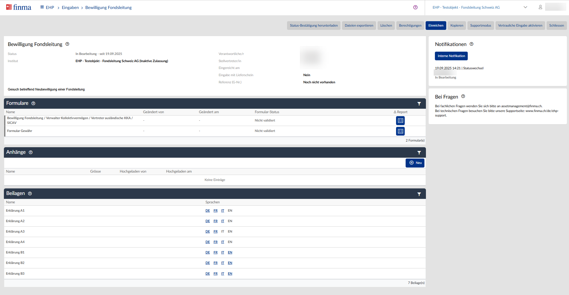 Toutes les annexes et tous les récépissés de saisie reçus par voie électronique ou par voie postale par la FINMA figurent dans la section «Annexes reçues par la FINMA» d’EHP.
